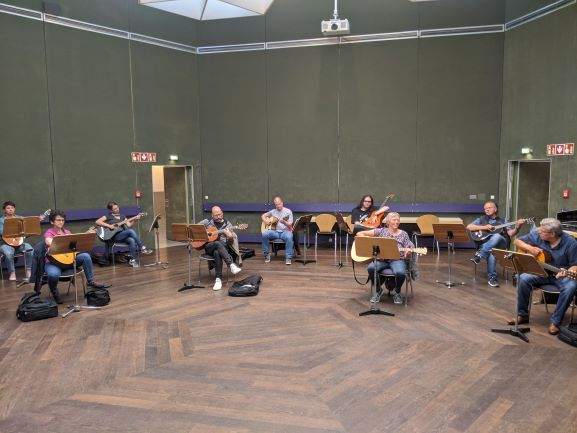 Ob Rock, Pop, Klassik oder Jazz: Wie wär's, wenn Sie einfach und überall losspielen könnten? Nichts ist dafür so geeignet wie die Gitarre. Sie beginnen mit einfacher Akkordbegleitung (Liedbegleitung) und leichten Melodien. Später erarbeiten Sie sich populäre Spieltechniken für Rock-, Blues- oder Folkmusik. Aber auch die klassische Gitarre soll nicht unerwähnt bleiben. Jeder, der Spaß daran hat, gemeinsam in der Gruppe etwas Neues zu lernen, ist herzlich eingeladen.